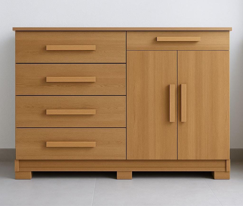 A Cômoda Sirius também possui 2 portas nas extremidades com prateleira interna, 5 gavetas para ajudar ainda mais com a sua organização. Me diz, fica muito mais fácil ter um quarto moderno .